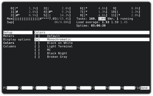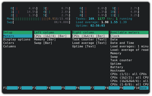 首先,按F2,它会出现设置提示,允许用户更改 htop 的外观: