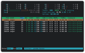 要过滤进程,您必须按F4并键入进程的名称。例如,我过滤了与 gnome-boxes 相关的进程:
