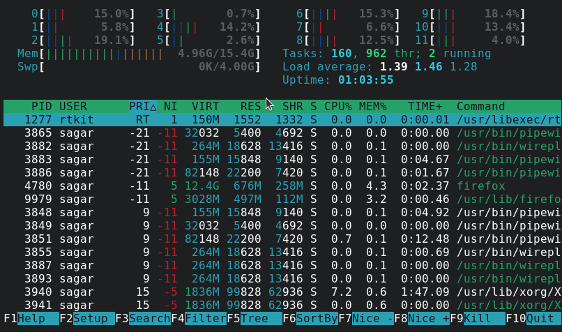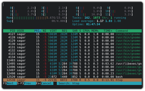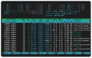 安装完成后,您只需在终端中使用 htop 命令,它将反映系统中所有正在进行的进程: