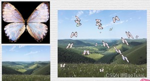 - 在随机位置将蝴蝶图片叠加到风景图片上,可以使混合后的图像更加自然,同时也增强了视觉冲击力。