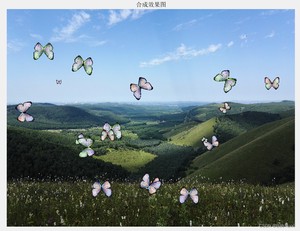 - 多次重复以上操作,可以得到多组不同的混合效果,使得蝴蝶与风景的关系更加复杂、多样。
