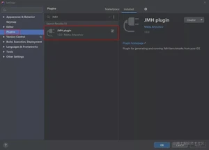 大家还可以通过 IDEA 安装 JMH 插件使 JMH 更容易实现基准测试,在 IDEA 中点击 ,然后搜索 jmh,选择安装 JMH plugin: