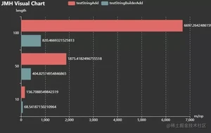 接下来,创建一个 JMH 测试类,用来判断 和 两种字符串拼接哪个耗时更短,具体代码如下所示: