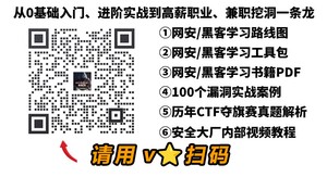 朋友们如果有需要全套《网络安全入门+进阶学习资源包》,可以扫描下方二维码免费领取(如遇扫码问题,可以在评论区留言领取哦)~