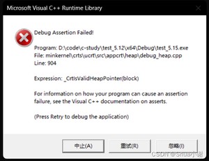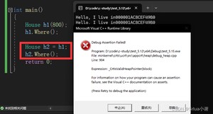 这时我们发现系统崩溃了,为什么呢?而且我们可以发现运行的出来的地址是一样的,这证明两个人的钥匙配对的是同一套“房子”,所以这是错误的!因为C++不知道你复制一把钥匙的目的是什么,所以就只是单纯的复制了一把钥匙,这就是浅拷贝!