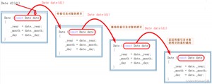 注意:在编译器生成的默认拷贝构造函数中,内置类型是按照字节方式直接拷贝的,而自定义类型是调用其拷贝构造函数完成拷贝的。