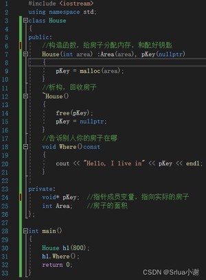 假如现在你买了(构造)一个房子,开发商给你配了一个钥匙(指针成员变量)