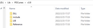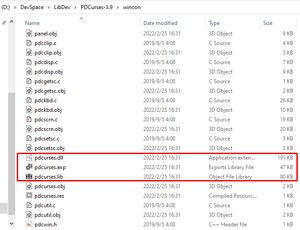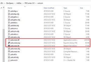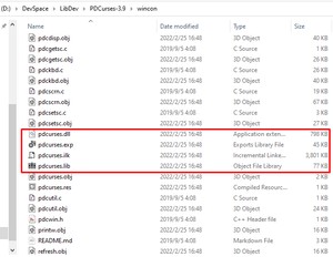 为了便于在程序中调用PDCurses,首先,将刚刚编译好的PDCurses库文件与头文件归置到适当的目录中: