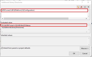 (2) Linker | General | Additional Library Directories 新增条目:$(PDCurses)LIB$(Platform)$(Configuration)