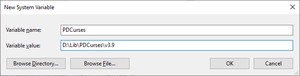 至于里面的文件怎么放置,当然是看 Visual C++ 的项目设置怎么方便怎么来。然后,设置系统环境变量PDCurses如下所示: