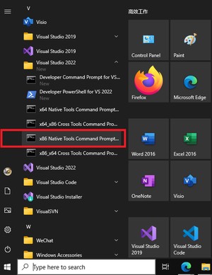 打开Visual Studio 2022的“x86 Native Tools Command Prompt for VS2022”窗口: