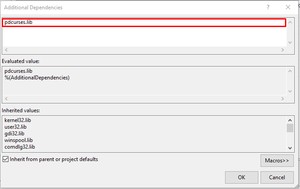 (3) Linker | Input | Additional Dependencies 新增:pdcurses.lib