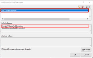 (1) C/C++ | General | Additional Include Directories 新增条目:$(PDCurses)include