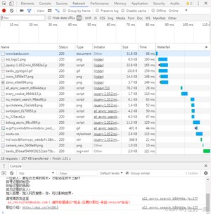 - 控制台(Console):控制台一般用于执行一次性代码, 查看JavaScript对象, 查看调试日志信息或异常信息.