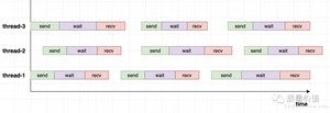 - 同一线程中连续的两个请求之间存在等待时间这种概念,即图中的空白处