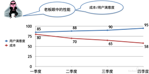 老板主要关心产品的收入、成本(用了多少钱服务了多少用户)、用户满意度(用户对产品是否满意)。