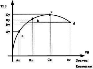 如下图所示,随着单位时间压力的不断增长,被测系统和服务器的压力不断增加,TPS 会因为这些因素而发生变化,而且通常符合一下规律。