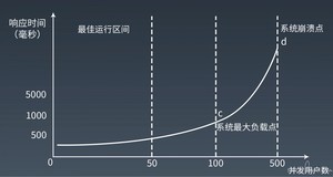 (4)性能拐点:一般服务都有性能临界点。当超过临界点时,吞吐量非线性下降,响应时间指数级增加,成功率降低。