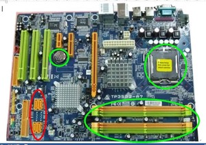 总线扩展槽,按功能分为内存插槽,PCI/ISA扩展槽,AGP,PCL,PCLE显示卡插槽等。