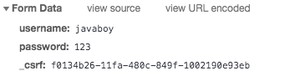 注意,这个测试接口是一个 POST 请求,因为默认情况下,GET、HEAD、TRACE 以及 OPTIONS 是不需要验证 CSRF 攻击的。