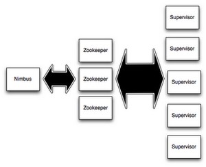 Nimbus和Supervisor节点之间所有的协调工作是通过Zookeeper集群来实现的。