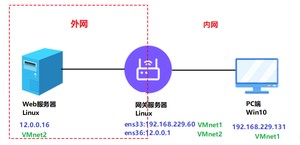 网关服务器内网IP(ens33):192.168.229.60;外网IP(ens36):12.0.0.1;linux网关打开IP路由转发、开启http服务