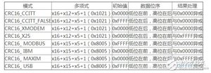 CRC16_MODBUS:多项式x16+x15+x5+1(0x8005),初始值0xFFFF,低位在前,高位在后,结果与0x0000异或