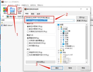 如果使用的WinRAR压缩器,想要取消这个密码,可以点击上方工具栏的【解压到】,在弹出的新窗口,选择解压后存放的文件夹,再点击【确定】。