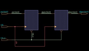 本设计为地址位宽为4位,利用格雷码判断空满时需扩展1位.