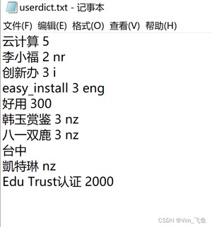可以看出,我的自定义词典在运行过程中,起到了具体的作用。可想而知,当我们在对一篇文章进行内容的分析处理是,也是可以使用jieba库的!可以通过用户自定义词典来增强歧义纠错能力!