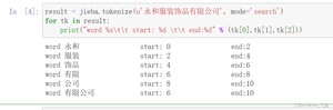- 搜索引擎模式,在精确模式的基础上,对长词再次切分,提高召回率,适合用于搜索引擎分词。