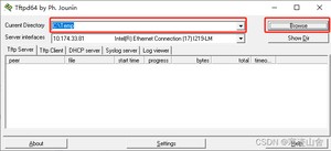 运行Tftpd64.exe,将本机作为tftp的服务器,