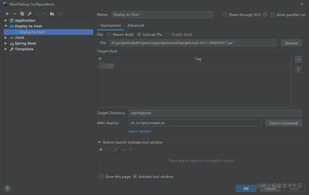 最后一步,部署启动我自己的应用,可参考我之前这篇用springboot做一个雨雪天气给自己发邮件的项目